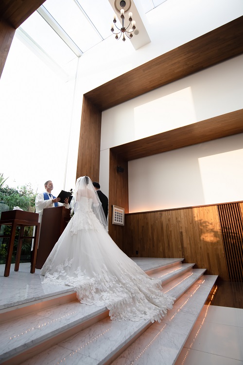 チャペルに続く全天候型大階段でアフターセレモニーも♪