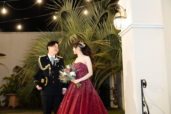 ナイトウエディングにもぴったりなボルドー×スパンコール