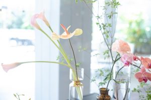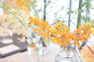 花嫁様の好きなお花から作ることもあれば、各テーブル毎にあえて異なるお花を活けゲストに合わせたおもてなしも楽しみの1つに。