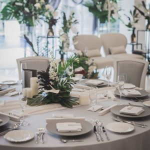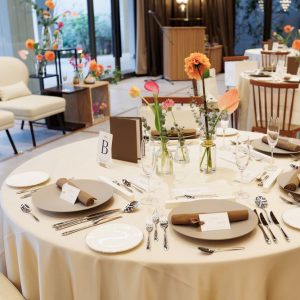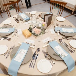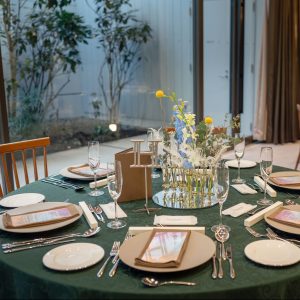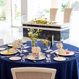 白を基調としたセイシェル会場には濃い色のクロスもおすすめ