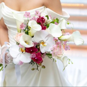 カラードレスと一緒に持っていただくブーケ