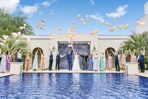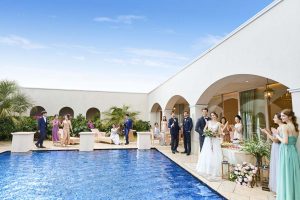 会場から吹き抜ける開放的なプールサイド&贅沢で華やかな演出でゲストがうっとり…