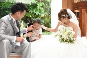 生まれたばかりの小さなお子様、子どもたちがお手伝いをする結婚式、