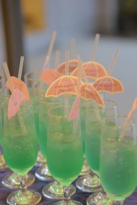 傘モチーフの飾りが付いたストローを挿したドリンクは