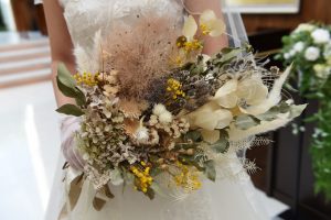 ドライフラワーをたくさん使用したおしゃれなブーケ♪
