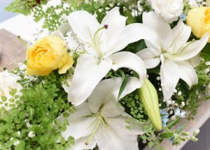 メインテーブルのお花は大きな百合の花×グリーンで