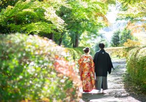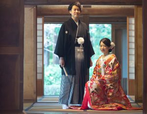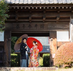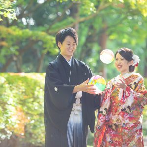 色打掛×紋付袴のロケーション撮影シーンのお写真を