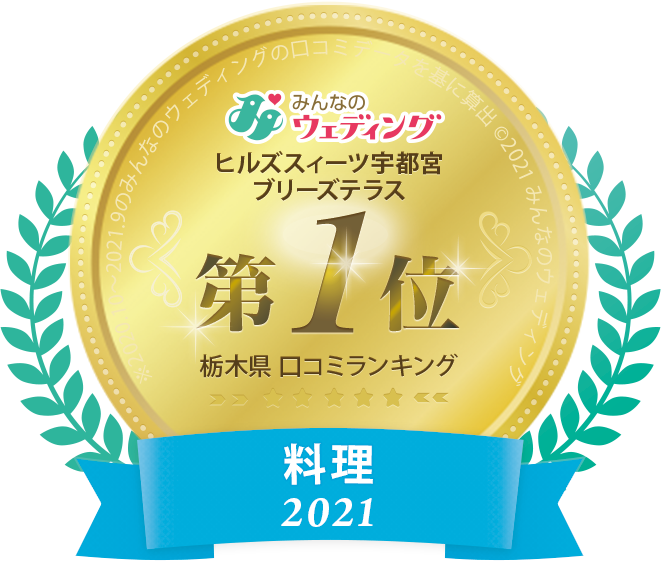 大切なゲストに心からの感謝を伝え、ゲストとおふたりに美味しい記憶を紡いでいく"料理"。人気口コミサイトでも料理部門で連続1位を受賞するほどの高い評価をいただいているヒルズスィーツ宇都宮ブリーズテラスでは、味や見た目の美しさはもちろん、香りや食感、音にまでこだわった、五感に響く一皿をご提供いたします。