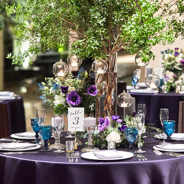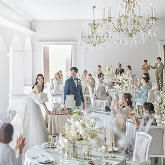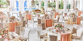 地上の楽園をイメージした、白く明るいバンケット「セイシェル」。ガーデンを備えた華やかで上品な空間は、パーティーのテーマに合わせて自由なアレンジが可能。プライベートなパーティーからビジネスシーンまで、幅広くご利用いただけます。