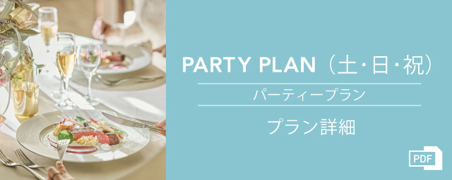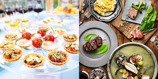 特別なパーティーに華を添えるのが、こだわりあふれる料理の数々。宴会・パーティーの様々な趣旨に合わせて料理長が提案させていただくメニューは、味、見た目ともに幅広い年齢層の方にご好評いただいております。例えば健康セミナーに合わせたヘルシーメニューのご提案、ガーデンパーティーで振る舞うビュッフェスタイルのメニューなど、ご要望に合わせてフレキシブルな対応が可能です。