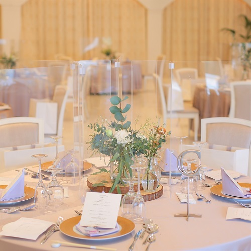 当日はコロナ禍での結婚式となり、感染症予防でアクリル板を設置していただきましたが、アクリル板はコーディネート面でも特に違和感なく、ゲストのみなさまに安心して過ごしていただけました。