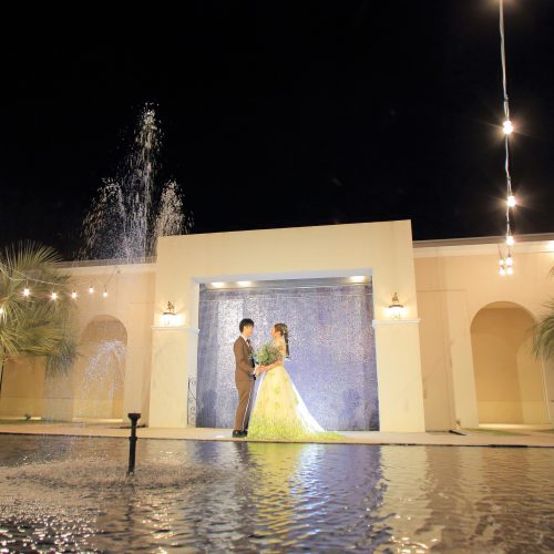 チャペルは天井高がとても高く開放感があり、ナチュラルな雰囲気でとても気に入りました。パーティー会場は2つの雰囲気の異なる会場から選ぶことができ、どちらも素敵でしたが、私たちの創りたいコーディネートに馴染むように白をベースとした会場を選ばせていただきました。ナフキンやテーブルクロスを決める際に何色を選んでも映えるので、選んでいてとても楽しく当日のコーディネートもとても満足でした!