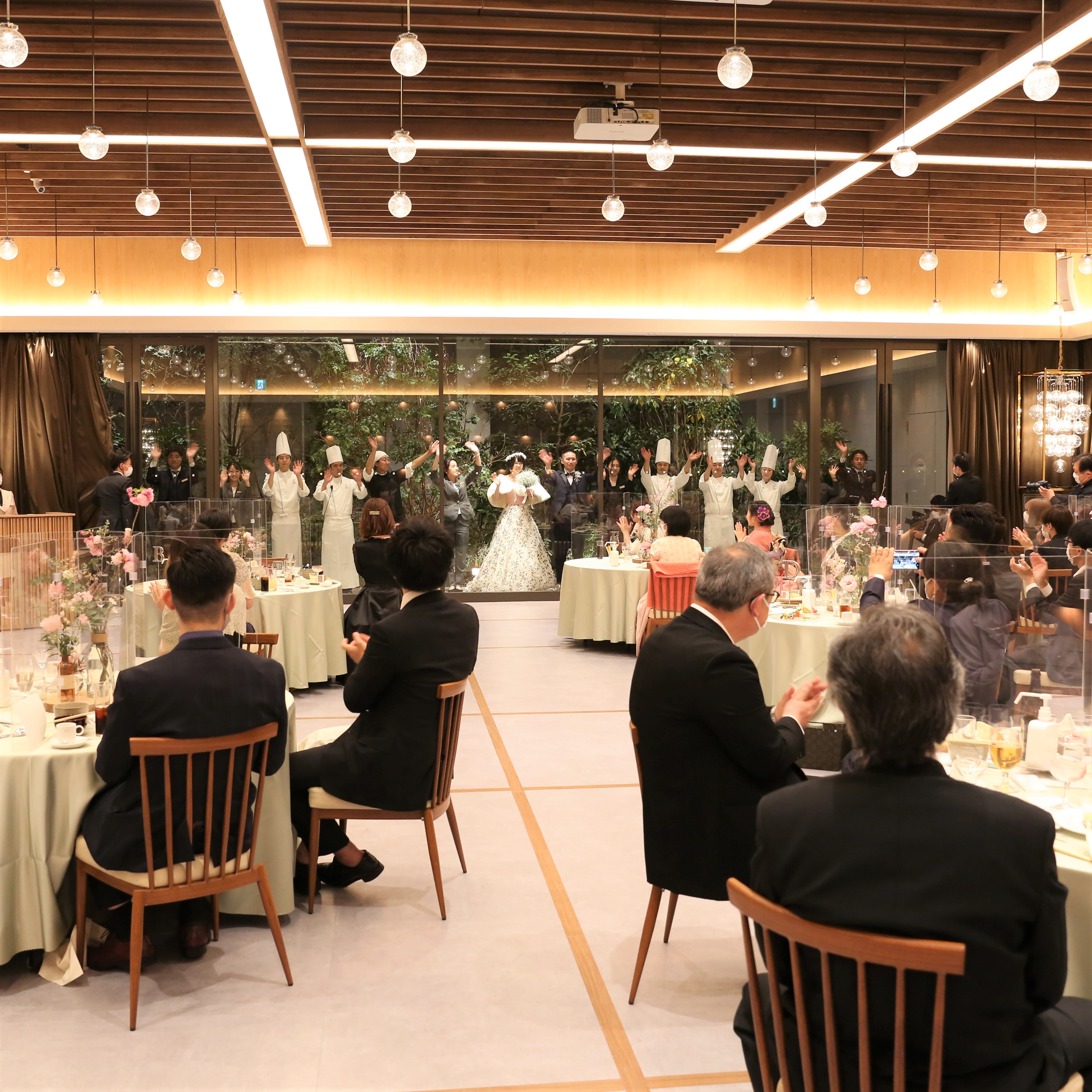披露宴会場には、一見壁に見えるものが扉になっており、扉が開くとオープンキッチンになっていました。