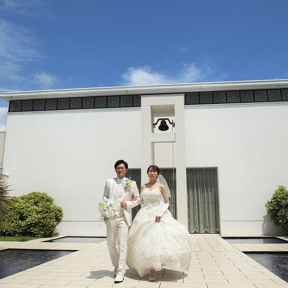 挙式会場の空のチャペルは、自然光が差し込みとても明るく、開放感があり、