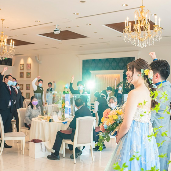 プランナーさんに前向きになるようなマリッジコレクションに誘ってもらったり、親身に話しをきいてもらったりして、挙げるために努力をしようと、こんな状況でも来てくれるゲストにできるだけ安心して楽しんでもらえるようにしようと前向きに考えられるようになりました。