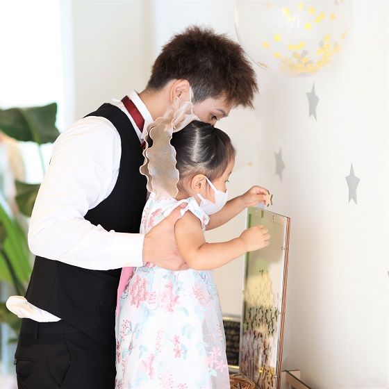 コロナ禍での結婚式でしたが、プランナーさんやキャストさんのおかげで、私達もゲストも安心して結婚式を楽しむことができました。ありがとうございました。