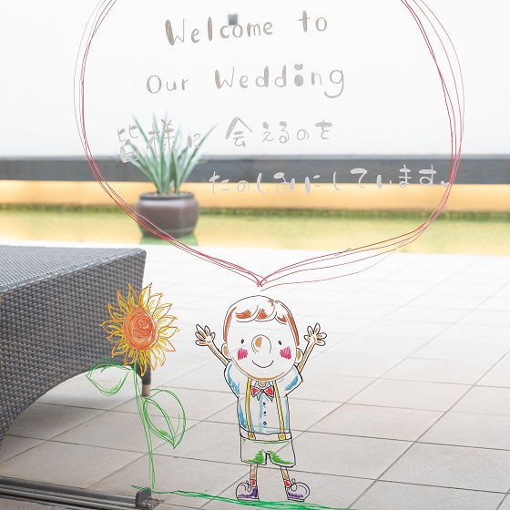 コロナ禍の中来ていただく方々には絶対に楽しんでもらいたい、そして少しでも多く感謝の気持ちを伝えたいと思い、さまざまなところに手書きのメッセージを置かせていただきました。オープニングムービーは手描きアニメーションで制作して気持ちを伝えました。ラウンジの窓ガラスにメッセージを書けたこと、そしてゲストからも直接メッセージを書いていただけたことは嬉しかったです。