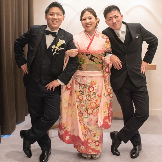 そして、結婚式を挙げると決めた時からこだわっていたのは両親への感謝も込めたオリエンタル和装でした。成人式や大学卒業式で着た振袖、この先振袖は着ることができないけれど最後にとても素敵に着付けていただき、本当に嬉しかったです。テーブルラウンド中にゲストの方々からたくさん「素敵!」と声をかけていただきやってよかったと心から思いました。