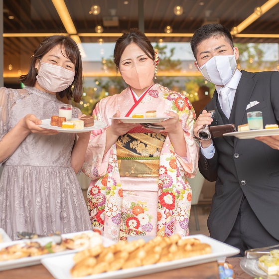 またデザートブッフェの際にはお皿を一人一人手渡ししてゲストとお話しできる時間ができました。結婚式では一人一人とお話しして感謝を伝えることは難しいと思っていたので、思いがけず幸せな時間でした。