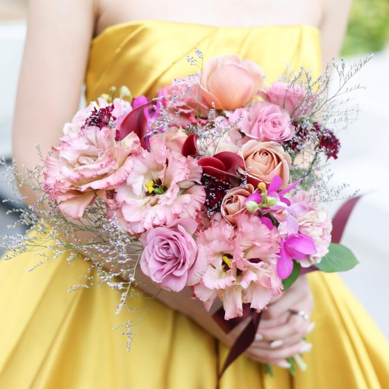 秋婚ですが、季節にとらわれずに明るめのお花を基本として