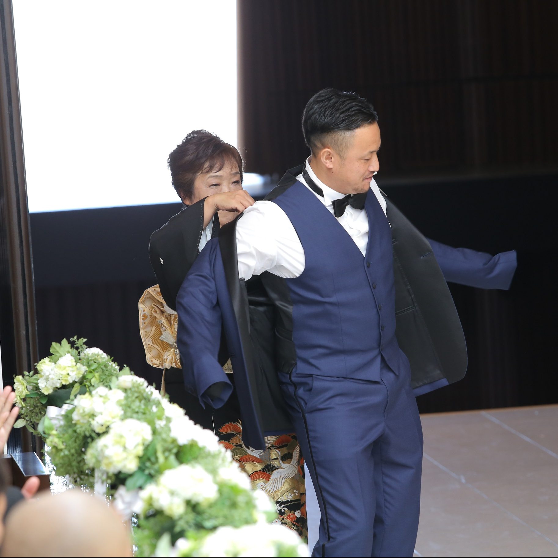 チャペルでリハーサルを終えてペアレントタイムという、今まで育ててくれた両親に一番にタキシード姿・ドレス姿を見せる時間をいただけます。両親の笑顔は今でも忘れません♡