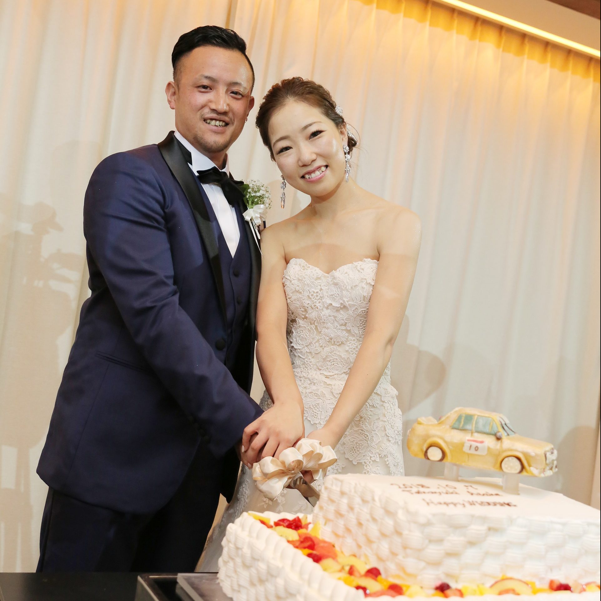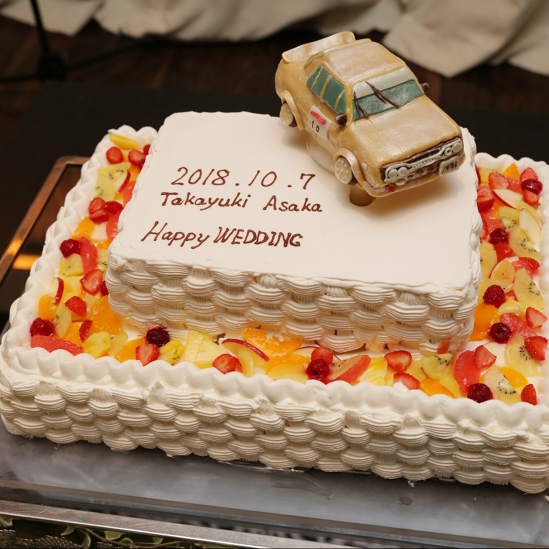 ウエディングケーキも大好きなハコスカを入れていただきインパクトのあるケーキに♡