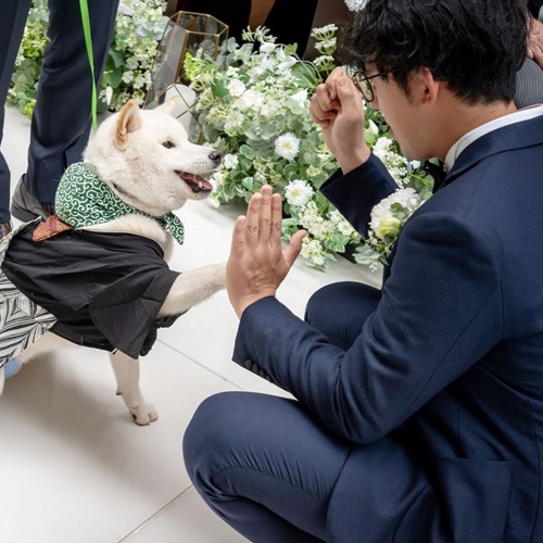 愛犬も披露宴会場外のガーデン端にいられたのがよかったです。