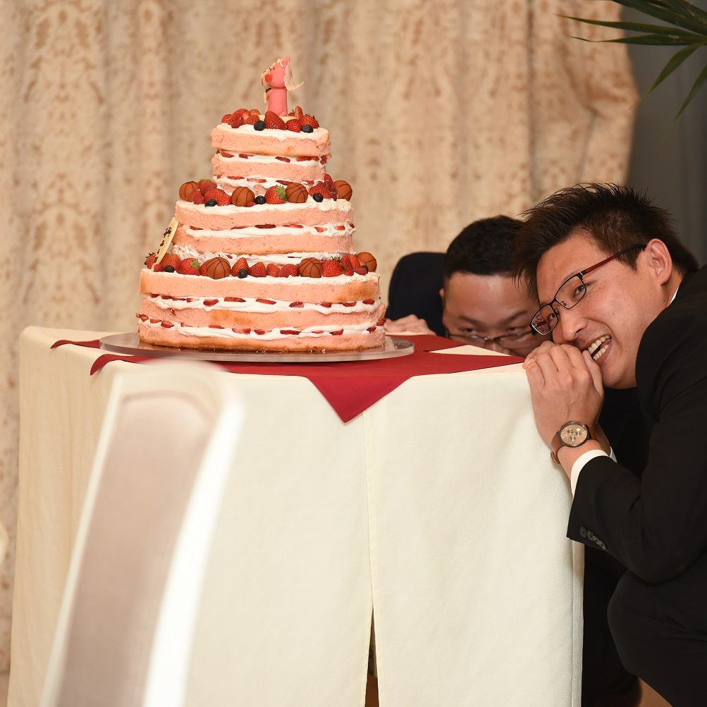 ケーキ入場ではサプライズで友人に運んでもらいました。会場内は大盛り上がりでした!