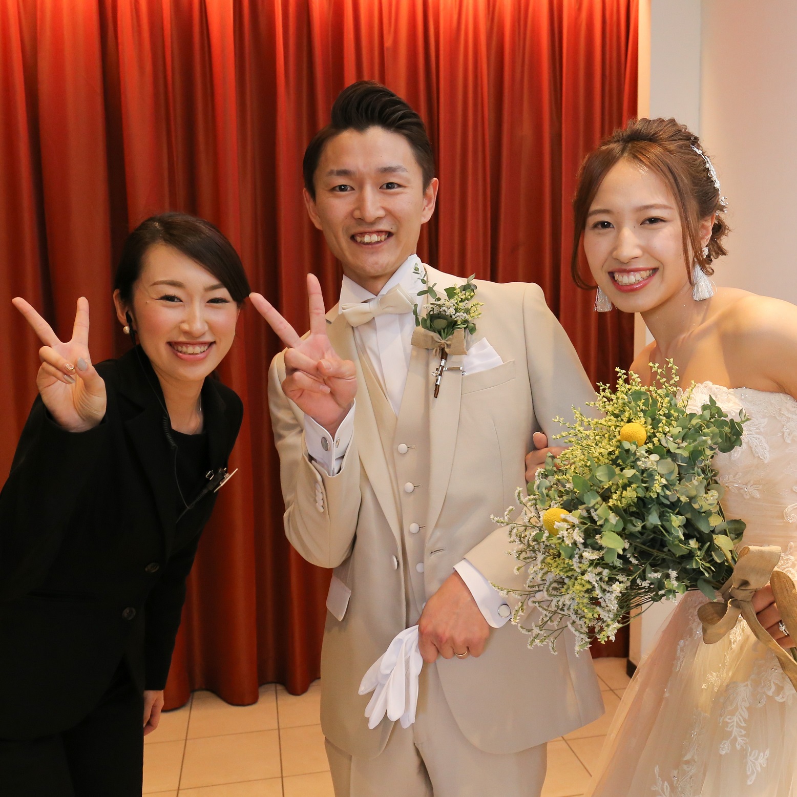 当日はあっという間に時間が過ぎていった感じでした。式場を決めてからの半年間最初はやることがたくさんあり、仕事が終わってから打合せだったり無理言ってしまったりプランナーさんをたくさん困らせてしまいました。しかし全てを受け止めてくれ、一緒に悩んでくれて、とても心強かったです。準備八割とよく言いますが本当にその通りだなと実感しました。当日は緊張しましたがプランナーさんを始めスタッフさんが笑顔で迎えてくれ緊張がほぐれ、スムーズに進めることができました。最高の結婚式になりました。サプライズの「フラッシュモブ」からの結びに花束を渡すプランナーさんの意見を取り入れ、大成功で良かったです。新婦の綺麗になっていく姿に感動し、ウェディングドレス姿を見た時さらに感動したのを覚えています。最高の式も自分達だけでは絶対成功しませんでした。ヒルズスィーツさんだったから成功したと思います。初めてヒルズスィーツさんでお話を聞いたスタッフさんの熱意と私たちの式を心から良い式にしますという言葉に私たちはヒルズスィーツさんに任せれば大丈夫だと思いました。引き継いでくれたプランナーさんに後から聞くと、お客様の雰囲気に合わせたプランナーさんをセッティングしていただいたみたいで話しやすく面白くいつでも笑顔で私たちのわがままにも真剣に向き合ってくれるピッタリのプランナーさんでした。衣装や音楽など全てのポイントにプロフェッショナルな方がいてそのすべてのスタッフさんがこの式の成功に繋がったと思います。一生に一度の最高の結婚式のために私たちが輝く瞬間のために寄り添ってくれた方に感謝の気持ちでいっぱいになりました。本当はDVDも残さない方向でしたが絶対残したほうが良いと言われ作っていただきました。それも今となっては宝物になっています。本当に作ってよかったと思います。ヒルズスィーツさんに出会って最高の場所で家族・仲間に最高の瞬間をいていただき幸せでした。