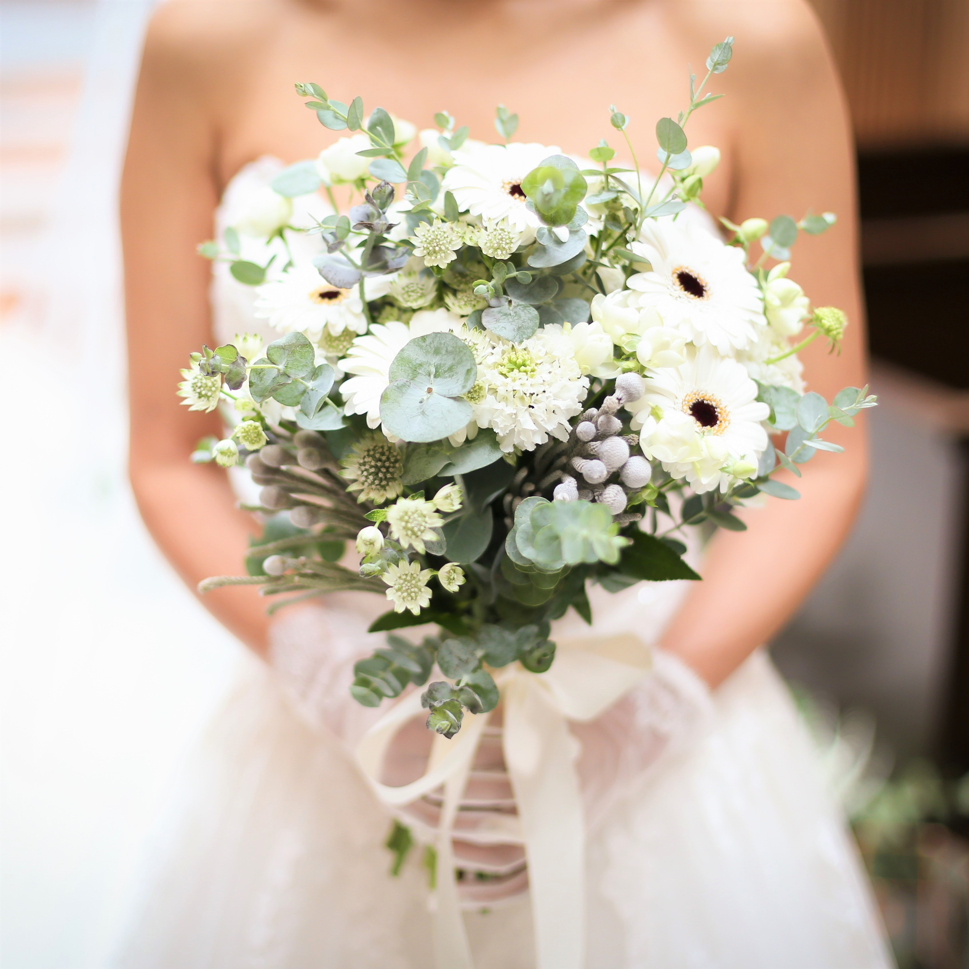 私たちはシンプルかつ、ナチュラルな結婚式をしたかったので、テーマを『Forest』にしました!装花などは白や緑を基調とし、丸太などを置いたりしました♡
