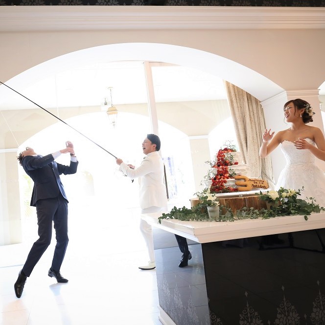 ウェディングケーキは苺をたくさん取り入れ、イメージ画像を見せながらスタッフさんと細かく打ち合わせを重ねてきました!生クリームの絞り方やフォーク型クッキーなど、本当にイメージ通りでした!サンクスバイトも釣りが好きな方に釣り竿バイトとして竿を使った演出も大好評で凄く盛り上がってくれてよかったです!!
