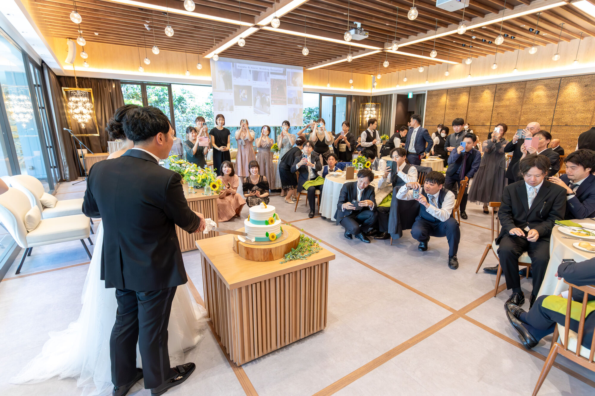 さらに披露宴では、全員参加型の演出「ライブキャンバス」を取り入れ、会場の一体感は最高潮に。 スクリーンを彩る思い出の写真に歓声が上がり、「大賞」発表の盛り上がりはこの日一番の思い出となりました。 おふたりとゲストの絆が形になり、まさに会場中に「スマイル」が咲き誇った最高の一日でした。