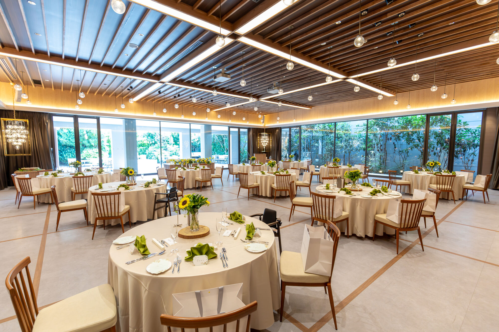 会場に一歩足を踏み入れると、そこにはおふたりが大好きな夏を感じさせる「ひまわり」が咲き誇り、鮮やかな黄色がゲストの皆様をパッと明るく迎えました。