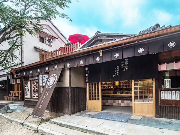 門前の左手には、江戸時代より続く土蔵を改装した、歴史風情豊かな二軒茶屋があります。結婚式のお打ち合わせ後におふたりでお茶を愉しんだり、結婚式当日にゲスト同士のお待ち合わせ場所としてご利用いただくことも可能です。