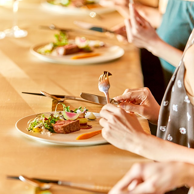 特別なパーティーに華を添えるのが、贅を凝らした料理の数々です。ご宴会・パーティーの様々な趣旨に合わせて料理長が提案させていただくメニューは、味、見た目ともに幅広い年齢層の方にご好評いただいております。例えば、健康セミナーに合わせたヘルシーメニューやビュッフェスタイルのメニューなど、ご要望に合わせてフレキシブルに対応いたします。