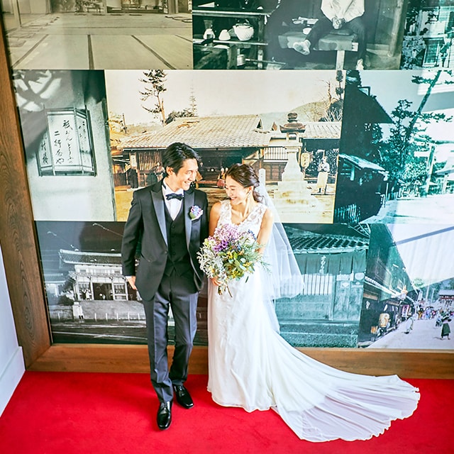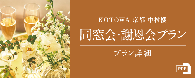 KOTOWA 京都 中村楼は、京阪本線「祇園四条駅」よりまっすぐ徒歩5分。八坂神社の鳥居内という抜群のロケーションにあります。また、阪急京都本線「河原町駅」と地下鉄東西線「東山駅」からも徒歩10分で、お車でお越しになる方のために近隣に駐車場をご用意。当日は送迎バスの手配も可能です。