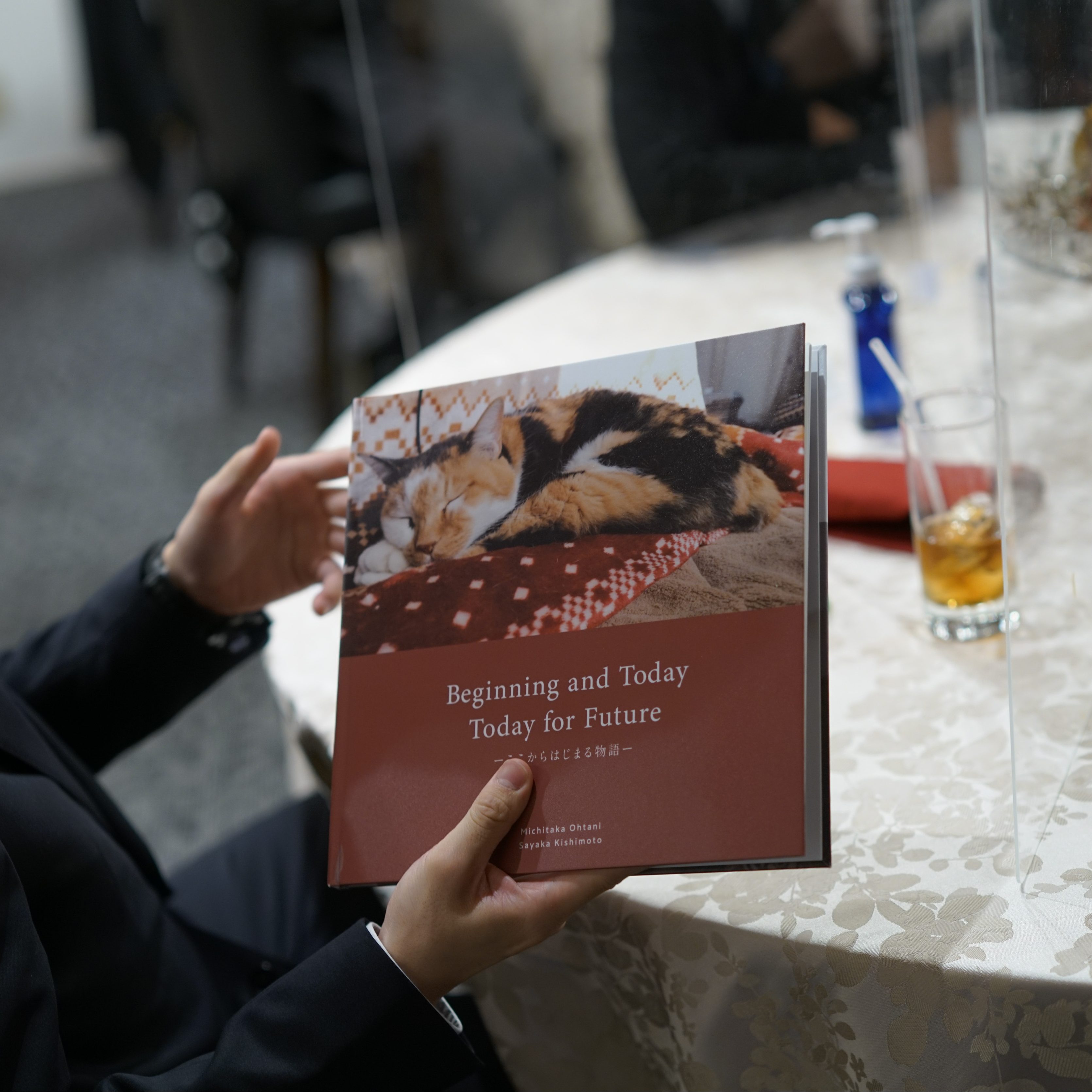 例えば、私たちのプロフィールと出会いから現在までの思い出をまとめた写真集「人生BOOK」をテーブルごとに回してご覧いただきました。