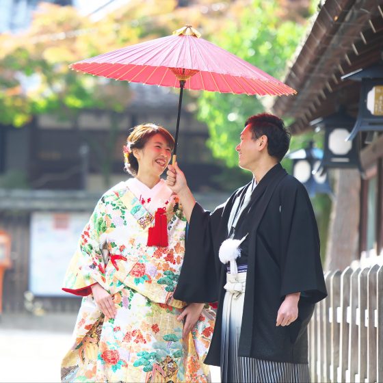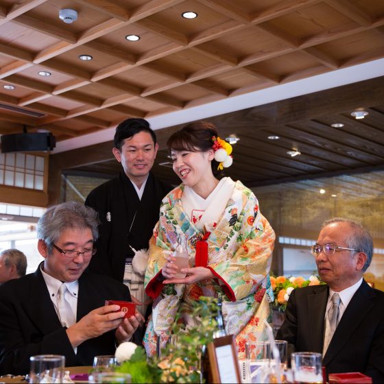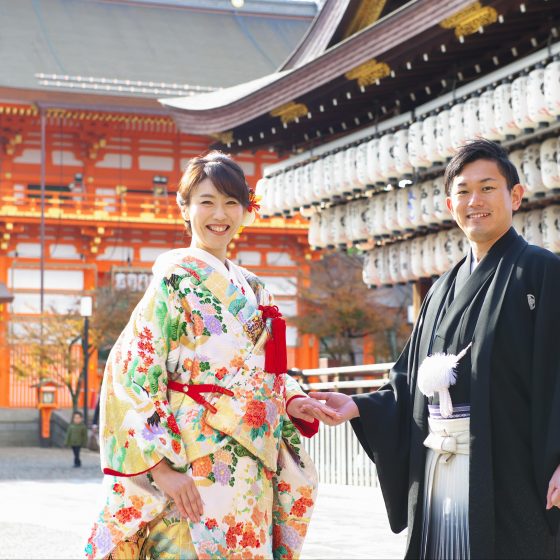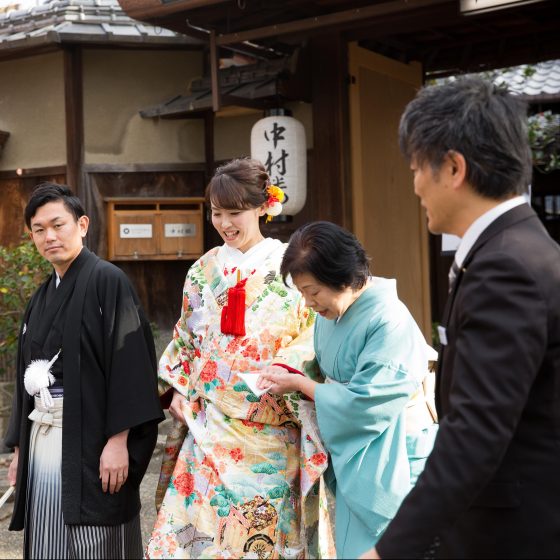 アクセスについて、遠方からのゲストも多数あったため、分かりやすさも大切です。その点、中村楼は認知度も高く、京都の玄関口である京都駅からのタクシー移動も容易です。また、KOTOWA京都中村楼でお支度してもらい、八坂神社で神前式、そして披露宴はKOTOWA中村楼と、行き来をするにも便利でした。八坂神社の方がお迎えにきてくださるのも、KOTOWA中村楼だけです。