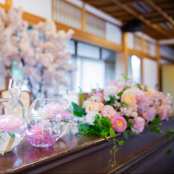 また、プランナーさんからの提案により、色打掛の下に着る着物をわたしが成人式のときに祖母に買ってもらった振袖を着ることにしました。世界に一つだけの衣装で、一生に一度の結婚式の日を、1組貸切で存分に楽しむことができました。