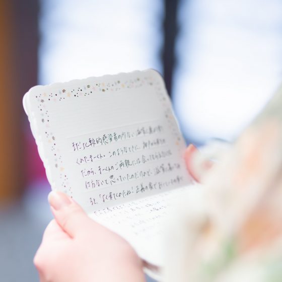 一度延期をしており、他の皆さまより長く担当プランナーさんとお付き合いできたと思います。その間いろいろと二人で悩んだり、不安になったりしましたが、たくさん話し合ってきたことは、一生に一度の結婚式に真剣に向き合うことができ、私たち二人にとっても良い思い出となりました。