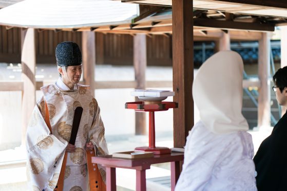 当日、自宅から神社に向かったため、予定時間をオーバーしていまいましたが、笑顔で出迎えてくださり、滞りなく結婚式を挙げることができました。また、挙式の後に境内の色々な所で写真撮影ができたのも、とてもいい思い出です。