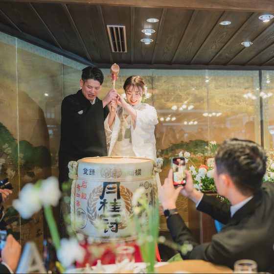 中村楼は八坂神社の境内にあり、参列してくれるゲストのみんなも式場に入る前から、私たちがテーマにしていた「和」を感じることができる式場だと思い選びました。