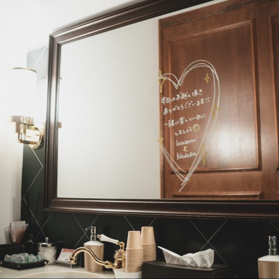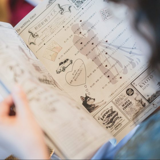ウェルカムスペースや、ゲストのテーブルに飾るペーパーアイテムの多くは、新郎新婦が手作りしました。デザインや製作はとても大変でしたが、こだわりの詰まったアイテムはゲストからも好評でした。