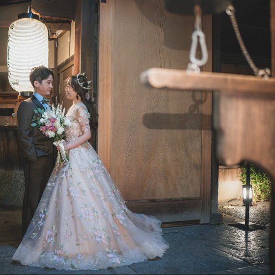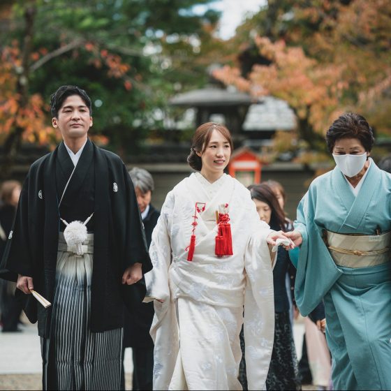 八坂神社は京都の有名な神社ですし、新婦にゆかりのある神社でもあったので、ここで挙式を挙げることは憧れだったため、まず八坂神社で挙式を挙げられたことがうれしかったです。八坂神社の厳かな雰囲気で伝統的な神前式を行え、身が引き締まる思いでした。挙式に参列した親族も満足しており、花嫁行列を友人に見ていただくこともできました。挙式当日、新婦は白無垢と草履で動きづらかったですが、介添の方に終始サポートしていただけました。