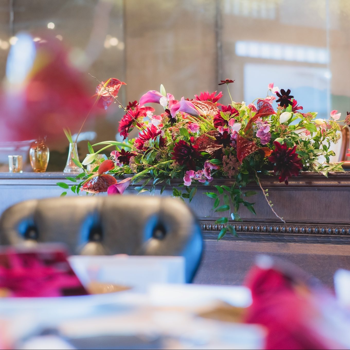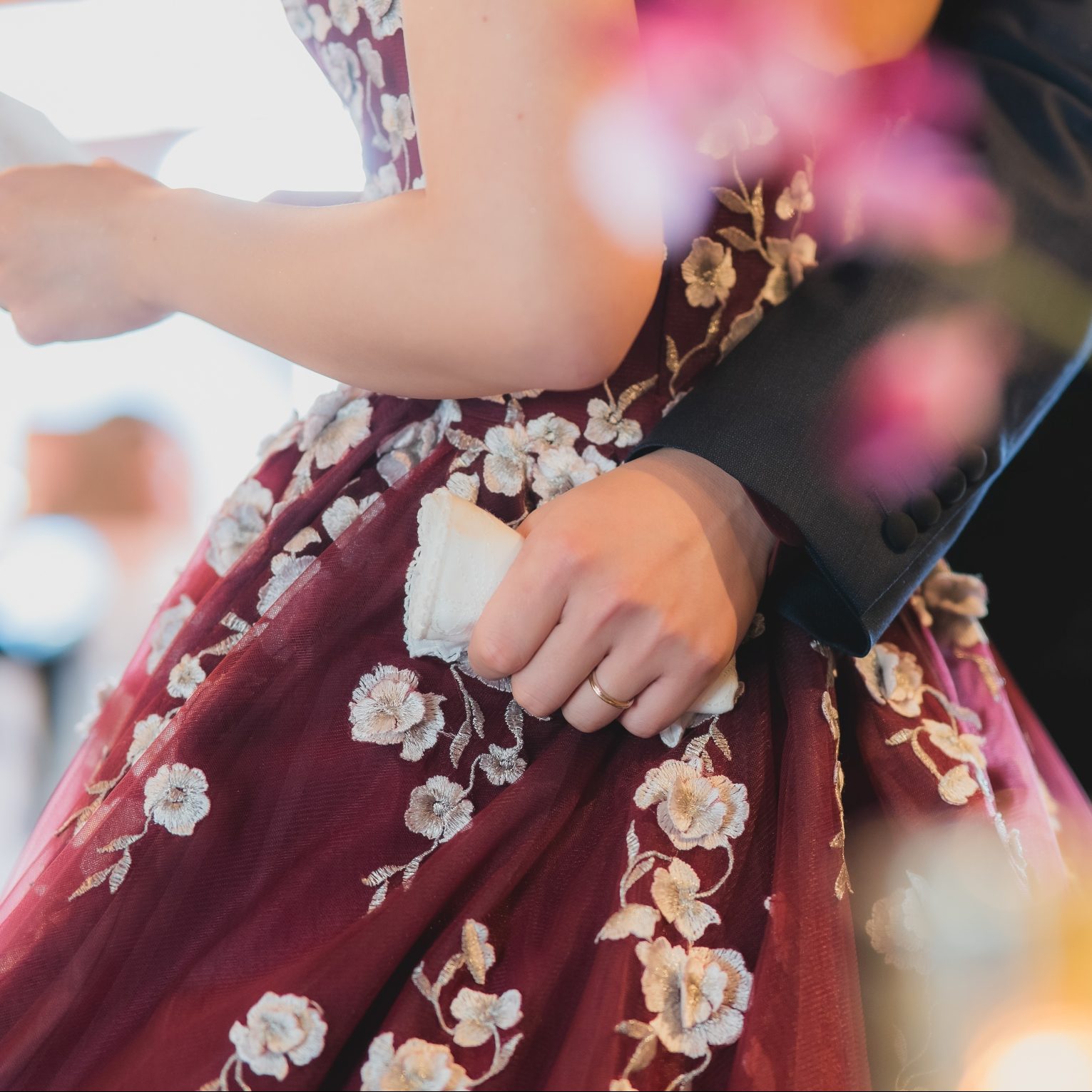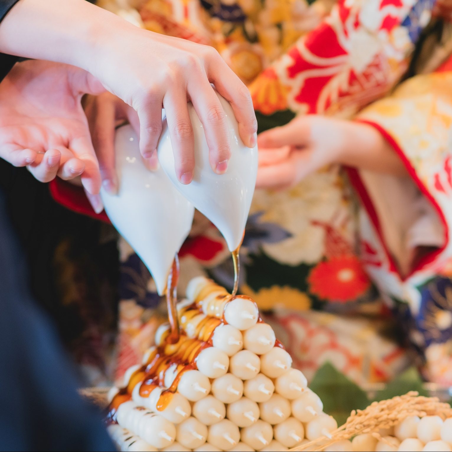 ゲストの皆さんと一緒に楽しめてあっという間の披露宴でした。60名規模で少し狭いかな…?と心配していましたが、逆に近い距離から友人が楽しんでくれている様子を見ることができて良かったです。私達がやりたいことを詰め込んだ内容だったため時間配分が心配でしたが、式場スタッフの皆さまの協力もありスムーズに進行できたことに大変感謝しております。また、和を感じられる披露宴にしたかったので、ウエディングケーキではなくみたらし団子タワーを企画しました。お団子もとっても美味しくてゲストの方々にも好評でした。披露宴では色打掛とカラードレスを着用でき、和洋どちらでも映える素敵な会場だと感じました。