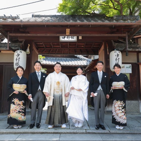 夫婦共に「結婚式は絶対に和装がいいから、和の雰囲気があるところがいいね」と言って探していたところ、八坂神社内かつ歴史ある建物の中で、しかも1日1組限定で出来るというKOTOWA京都中村楼に出会い、他の式場を検討することもなく見学当日決められました。