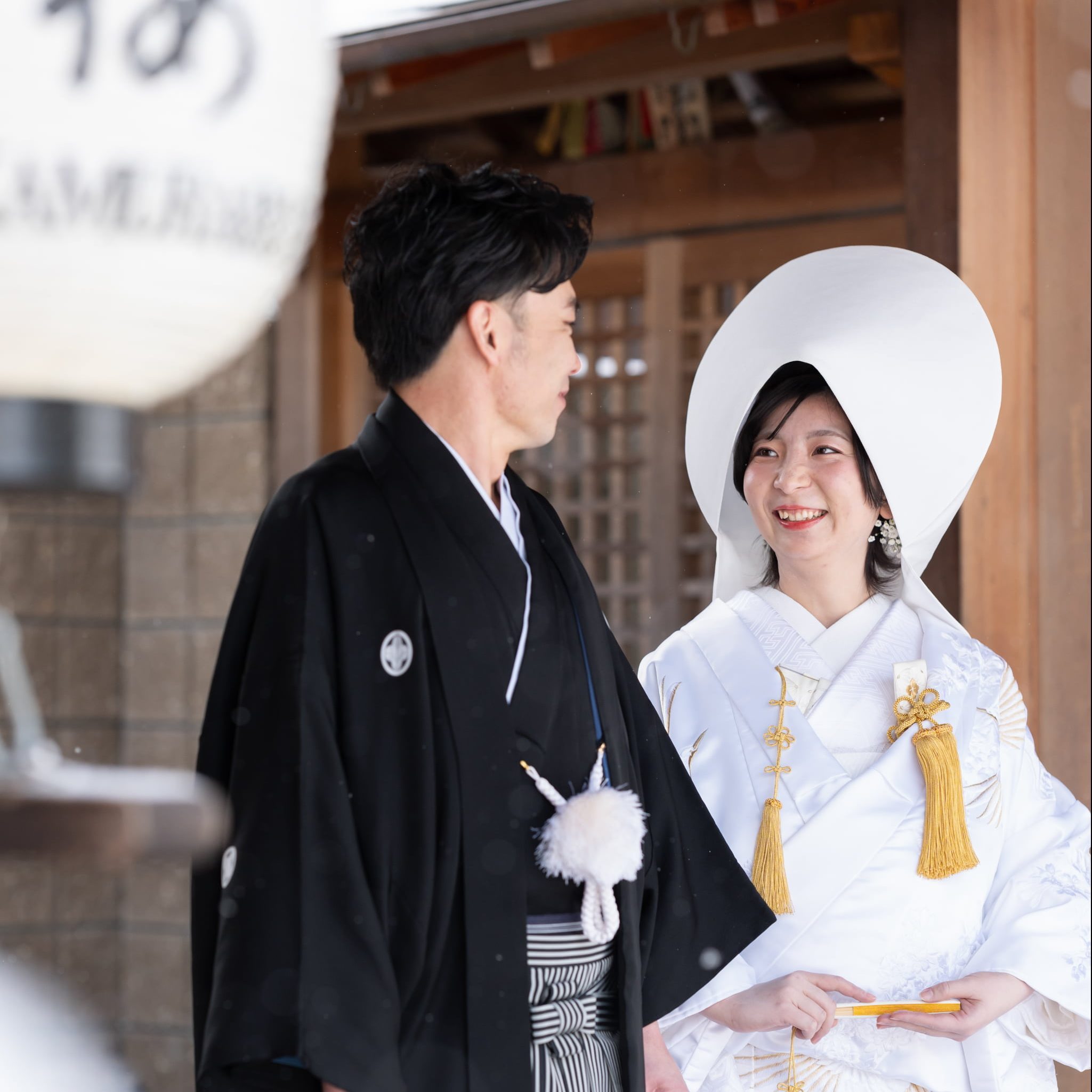 とても寒い中で震えながら花嫁行列や挙式を行いましたが、雪の八坂神社さんは朱色の本殿と白い雪のコントラストがとても美しく、そんな中で式を挙げることができたことでより一層思い出に残るものになりました。