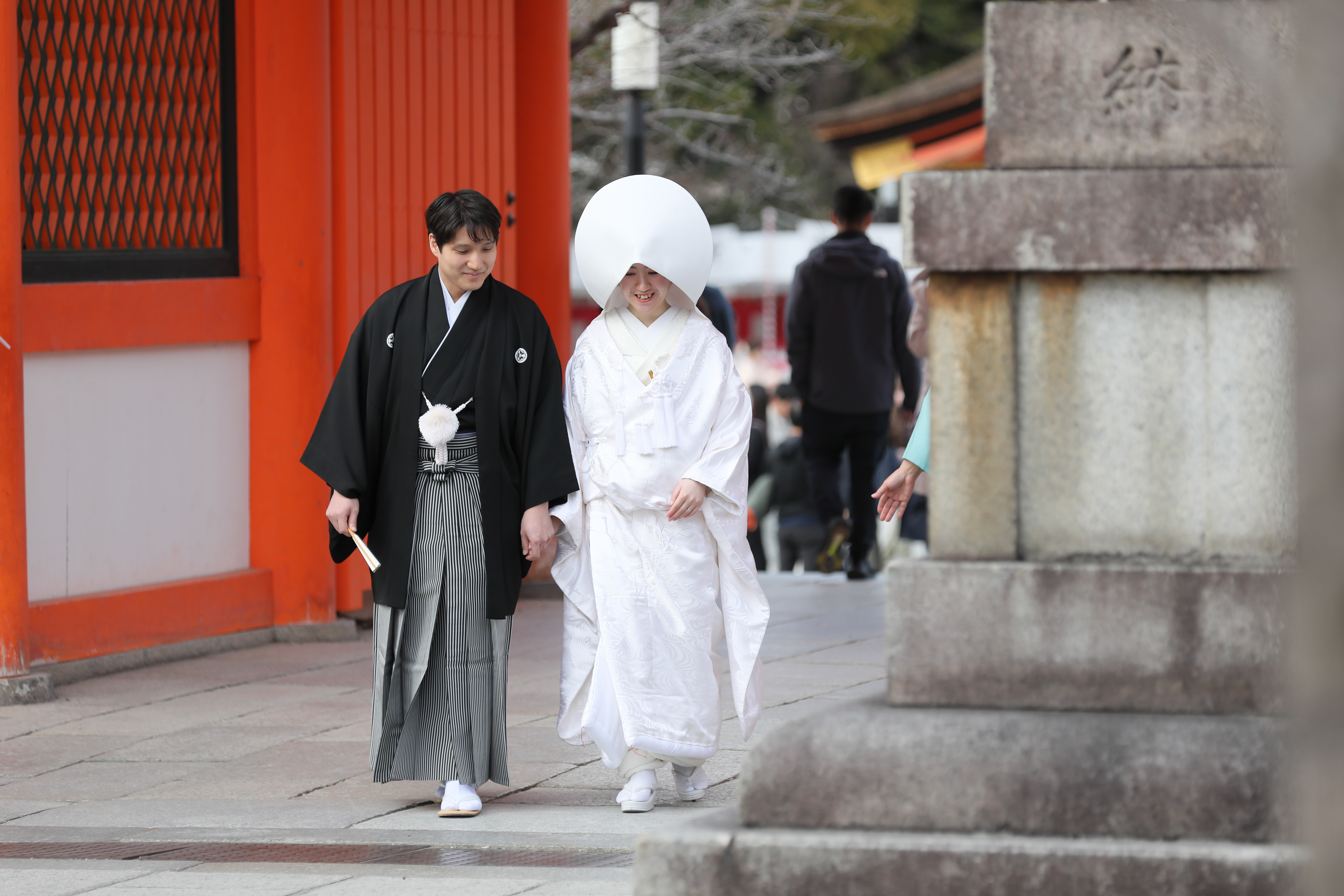 観光客の皆様からも温かな祝福を受け、まるで神社全体をおふたりで貸し切ったかのような、格式高くも幸せな時間に包まれました。