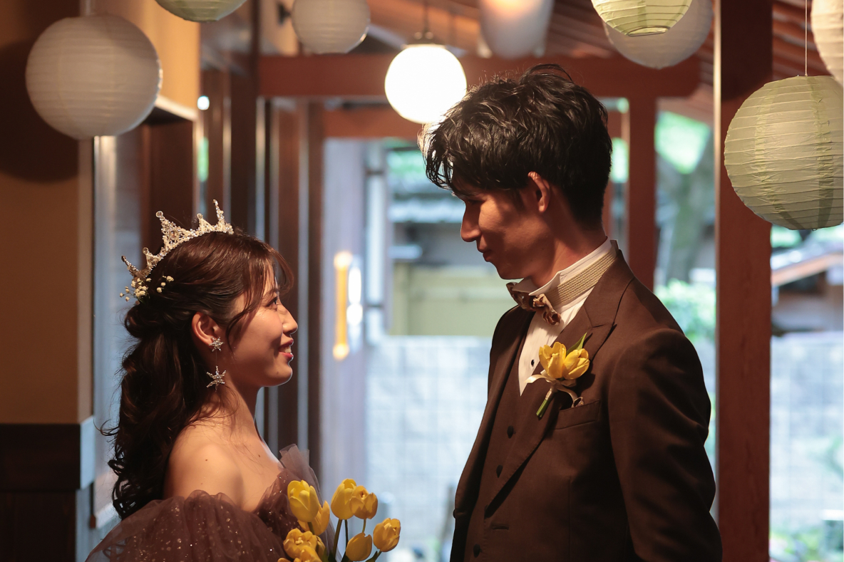 初めてお会いした時から、おふたりの温かいお人柄に引き込まれたことを覚えています。会場選びの段階から、遠方のゲストへの配慮や八坂神社での神前式への強い想いをお話しくださり、常に周りの方を大切にされる素敵なおふたりだと感じました。おふたりと私は同世代ということもあり、最初から意気投合して楽しくお話しさせていただいたのがとても印象的です。