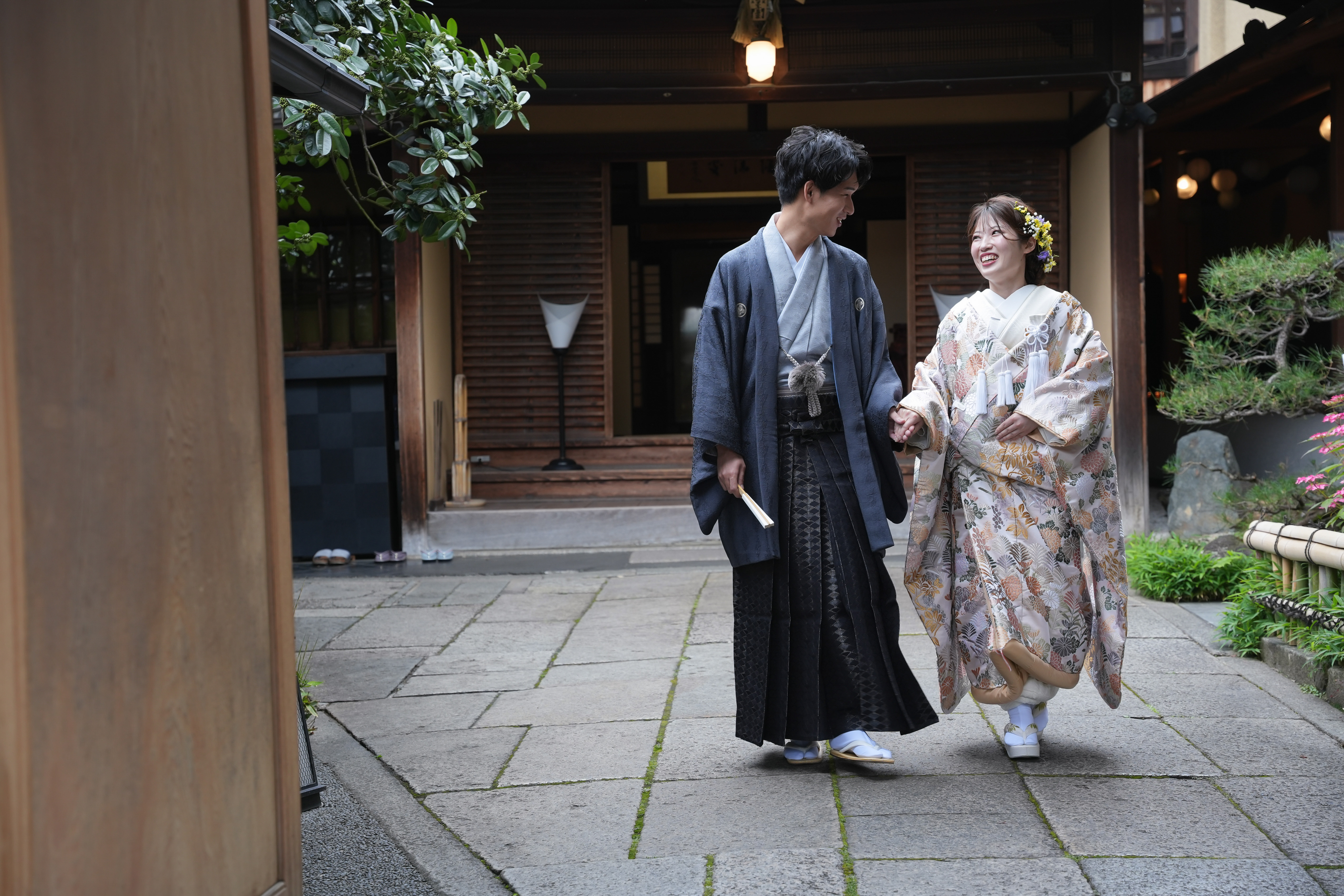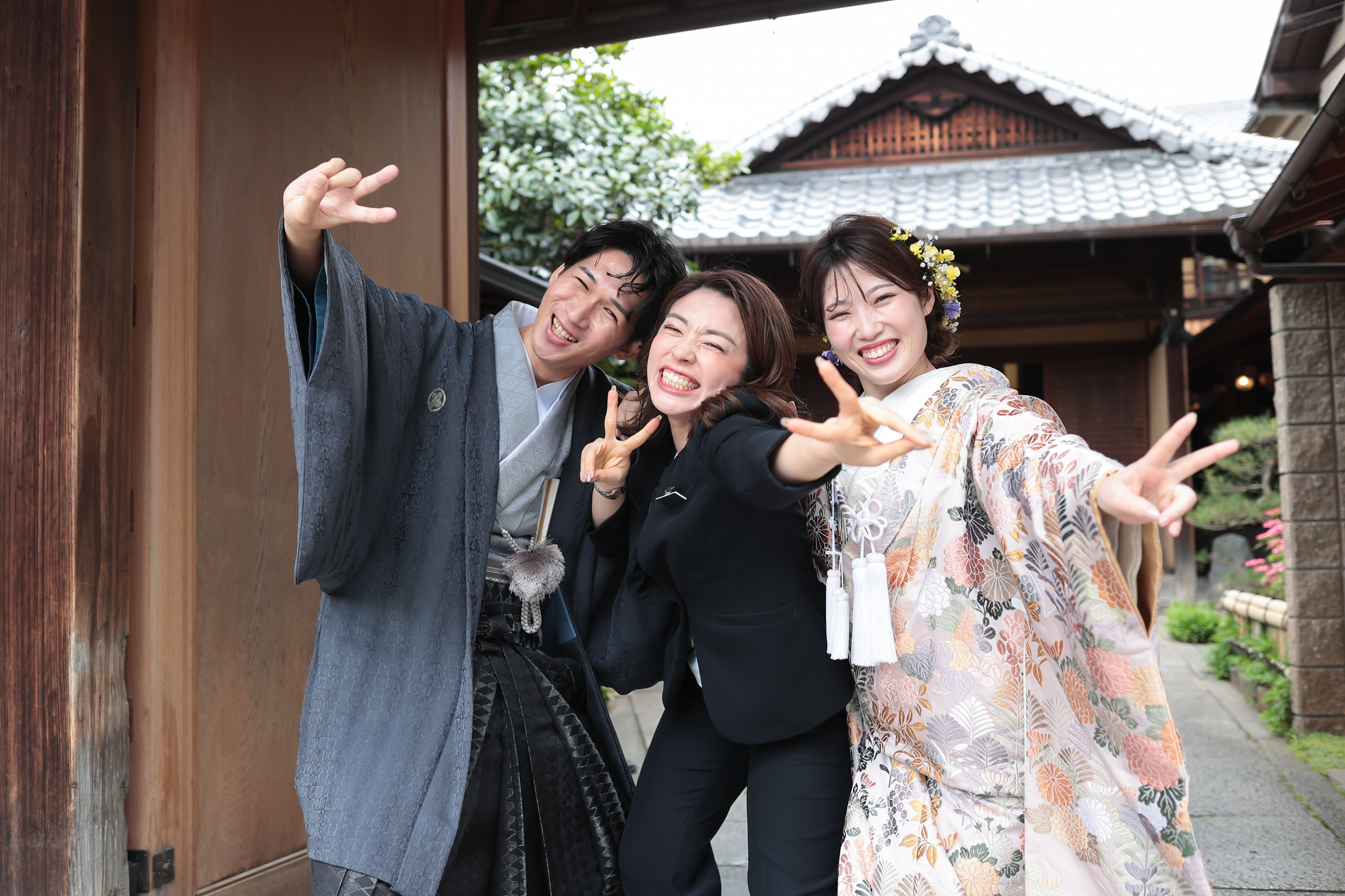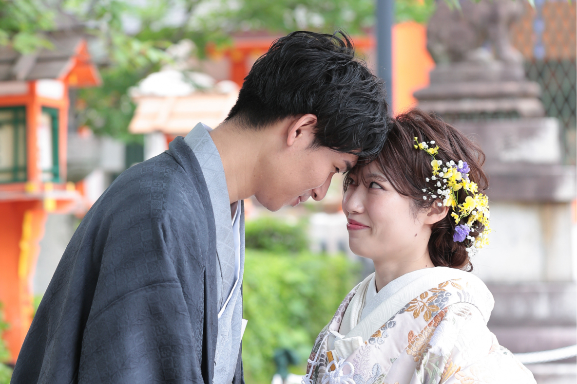 挙式直前まで気がかりだったお天気も、おふたりの門出を祝うようにお日様が顔を出し、八坂神社の美しい風景の中でおふたりの幸せそうな笑顔が輝いていたのが本当に嬉しかったです。